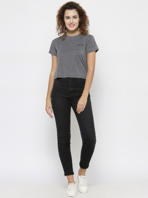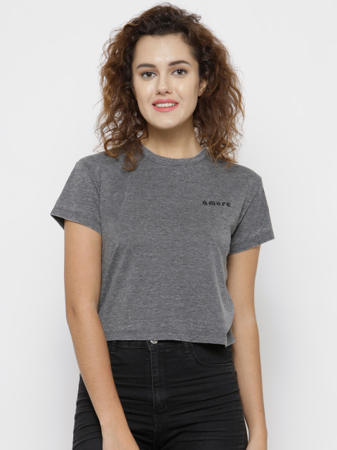 Grey melange solid T-shirt, has a round neck, short sleeves