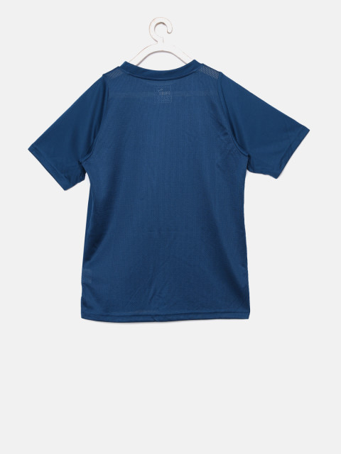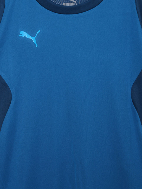 Blue solid T-shirt, has a round neck, short sleeves