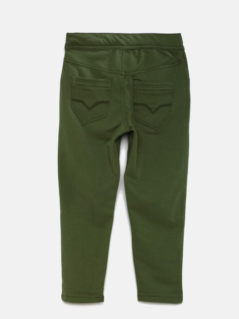 Olive green solid mid-rise regular trousers, has a drawstring closure, 5 pockets