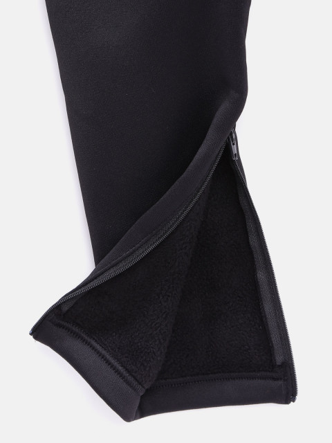 A pair of black mid-rise panelled track pants, has two zip pockets, an elasticated waistband with an inner drawstring fastening, zip detail on both hems, and fleece lining. Engineered with Climaheat technology. Warranty 3 months from the date of purchase against manufacturing defects