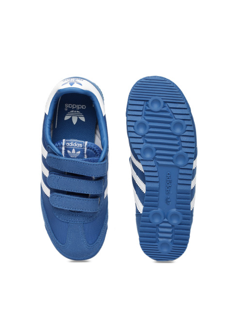 A pair of round-toe blue sneakers, has Velcro detail. Mesh upper, cushioned footbed, textured and patterned outsole. Warranty 3 months from the date of purchase against manufacturing defects. Warranty provided by Brand Owner or Manufacturer