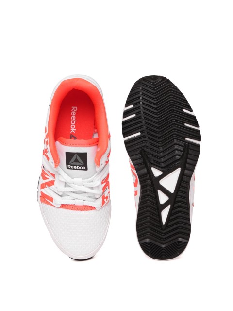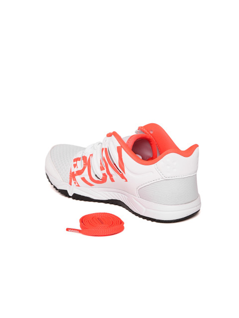 A pair of white running sports shoes, has lace-up detail. Mesh upper, cushioned footbed and textured and patterned outsole. Warranty for 3 months. Warranty provided by Brand Owner or Manufacturer