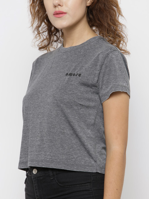 Grey melange solid T-shirt, has a round neck, short sleeves
