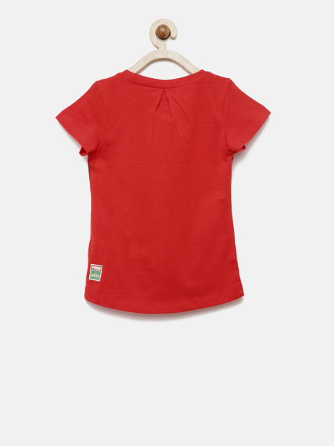 Red printed T-shirt engineered with dry technology, has a round neck, short sleeves, a curved hem