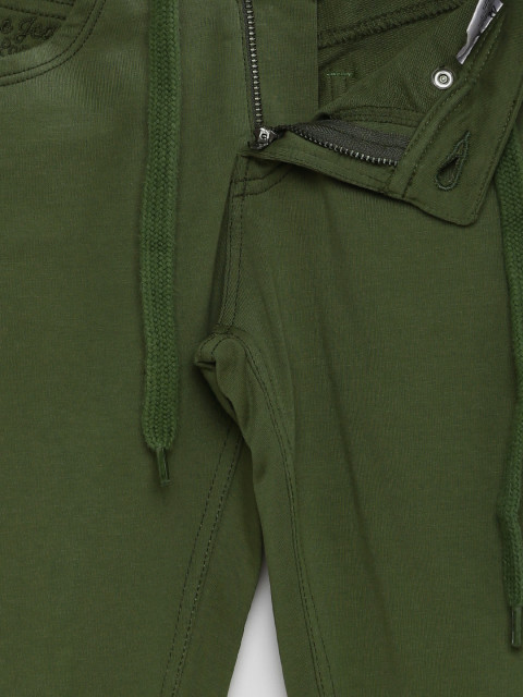 Olive green solid mid-rise regular trousers, has a drawstring closure, 5 pockets