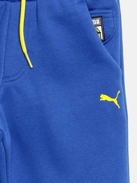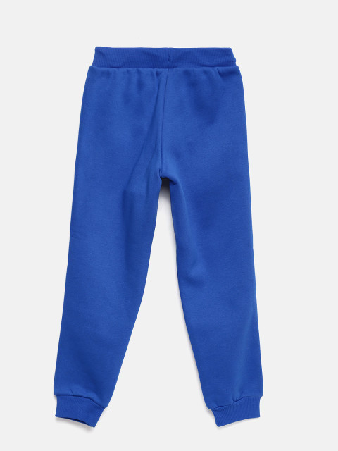 Blue printed track pants, has an elasticated waistband with a drawstring fastening, two pockets, ribbed hems