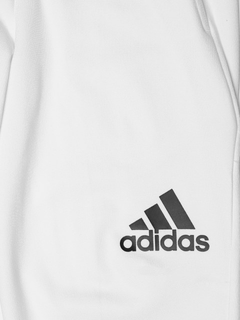 A pair of white knitted mid-rise track pants, has two pockets, an elasticated waistband with inner drawstring fastening. Warranty 3 months from the date of purchase against manufacturing defects
