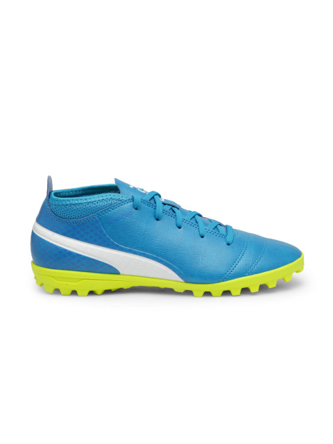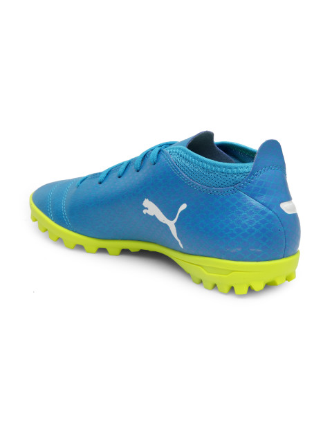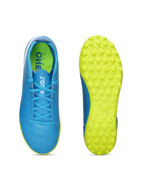 A pair of blue football sports shoes, has lace-up detail. Synthetic upper, cushioned footbed and textured and patterned outsole witth nubs. Warranty for 3 months. Warranty provided by Brand Owner or Manufacturer