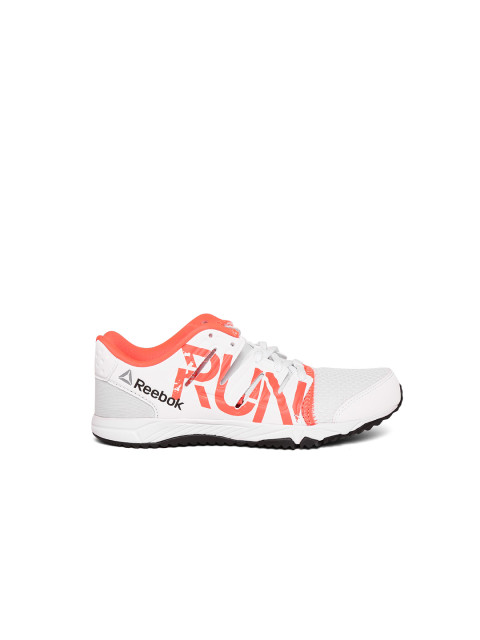A pair of white running sports shoes, has lace-up detail. Mesh upper, cushioned footbed and textured and patterned outsole. Warranty for 3 months. Warranty provided by Brand Owner or Manufacturer